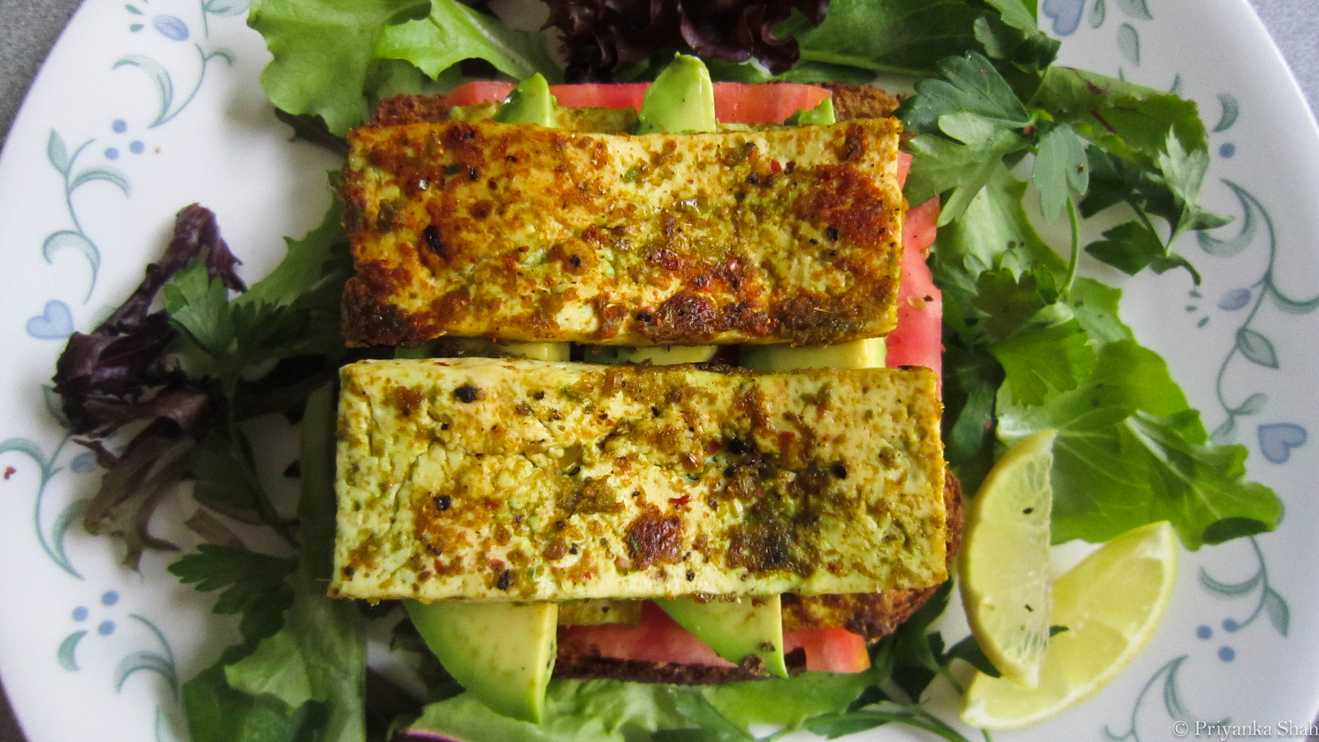 This was my first time trying this recipe, and it was absolutely delicious. If you like it more spicy, use chili oil instead of olive oil, or add crushed red pepper to tofu slices when cooking, or maybe some more masala. Experiment and customize, and enjoy this delicious, healthy Jain meal 🙂