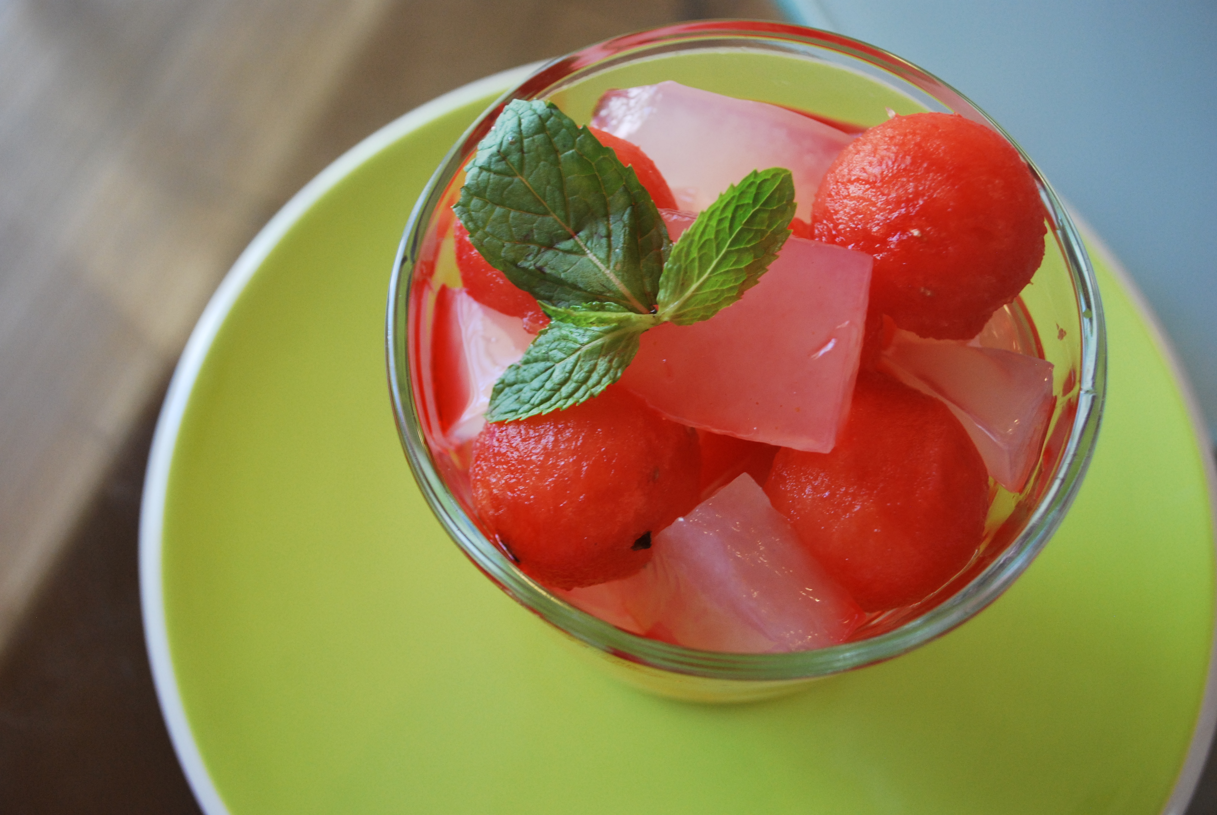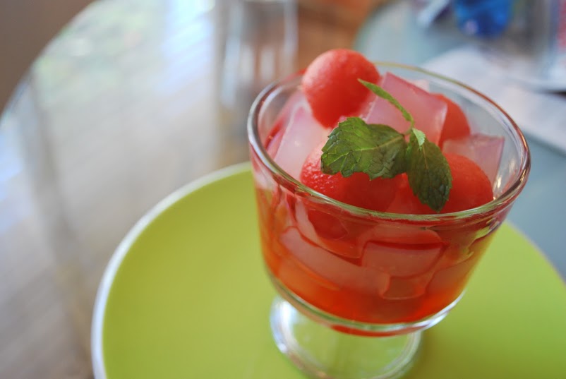- Arrange watermelon with Lychee jello pieces and mint leaves in a parfait glass. Drizzle rose syrup over the parfait and savor every bite.