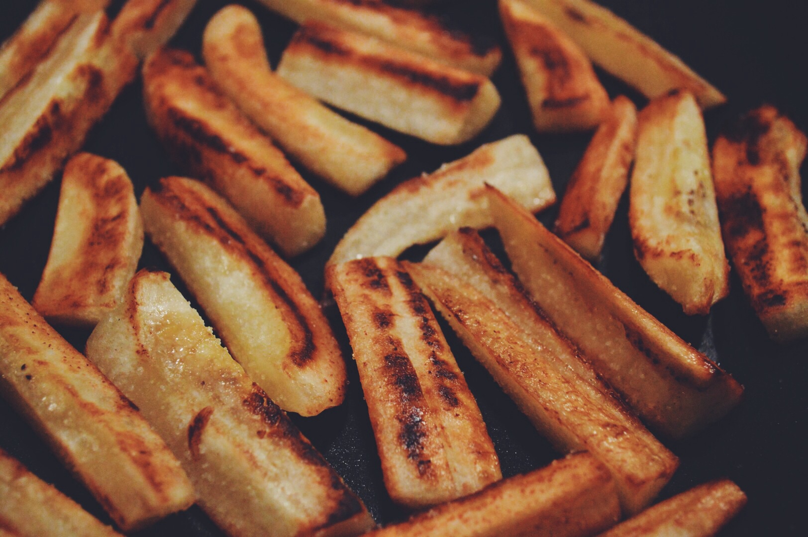 Yeah, you read that right—these are potato-less fries. Eating Jain doesn’t mean you have to miss out on fries! In fact, they taste identical, probably even better. Plantains make the best potato substitute for Jain recipes, even in dishes like Paav Bhaji! Simple and quick, this recipe makes a great kick-back snack. I do not deep fry them in order to keep these fries as healthy as possible. You might also try baking them!