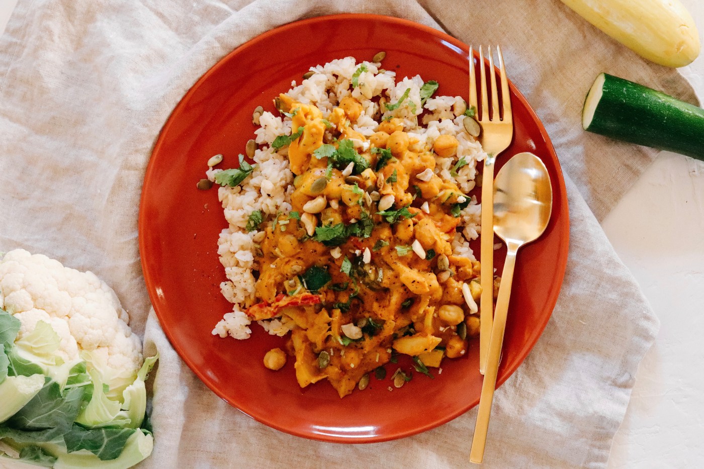 Try this Vegan Pumpkin Chickpea Coconut Curry recipe! @pinkispalate #plantbased