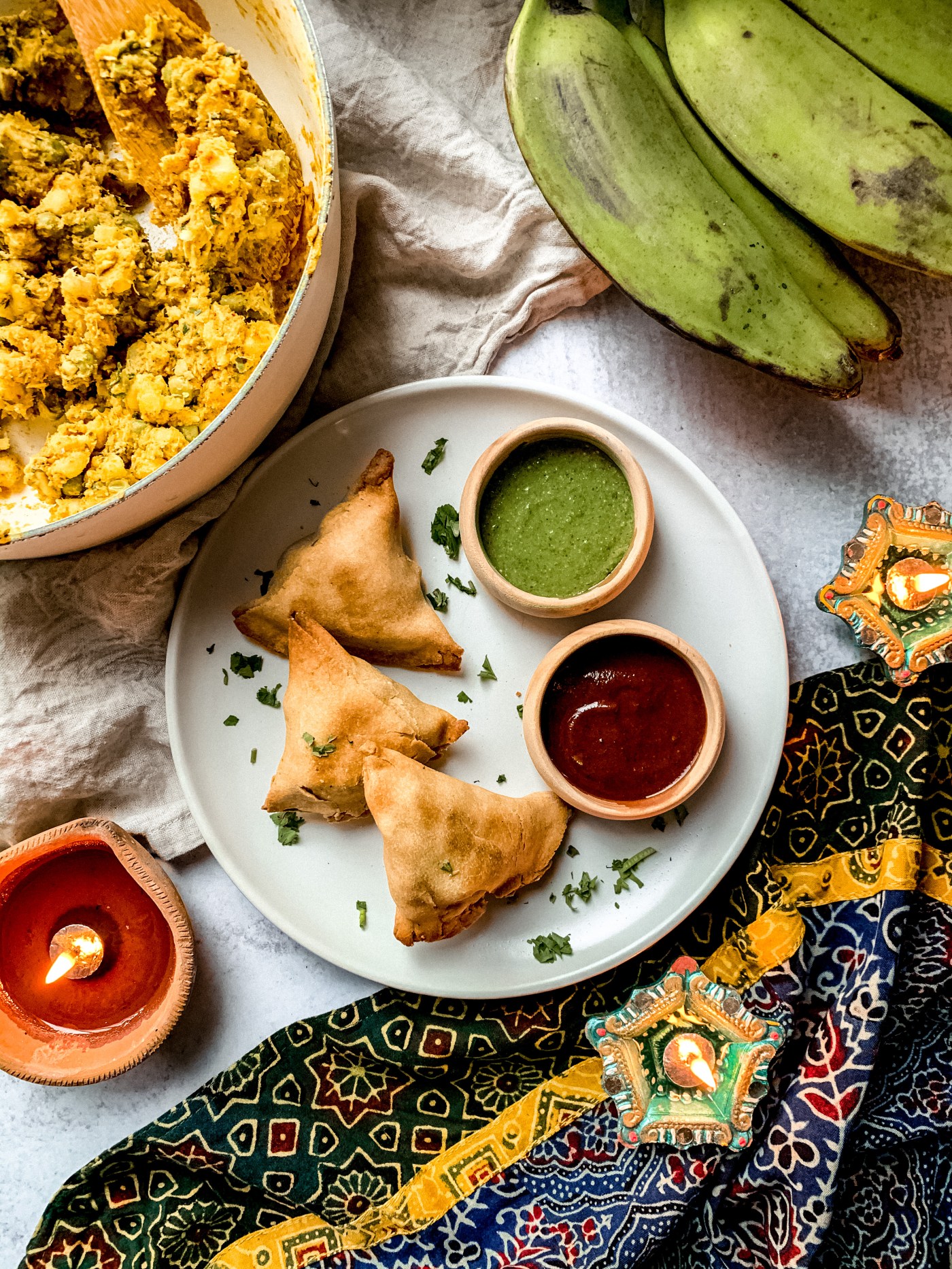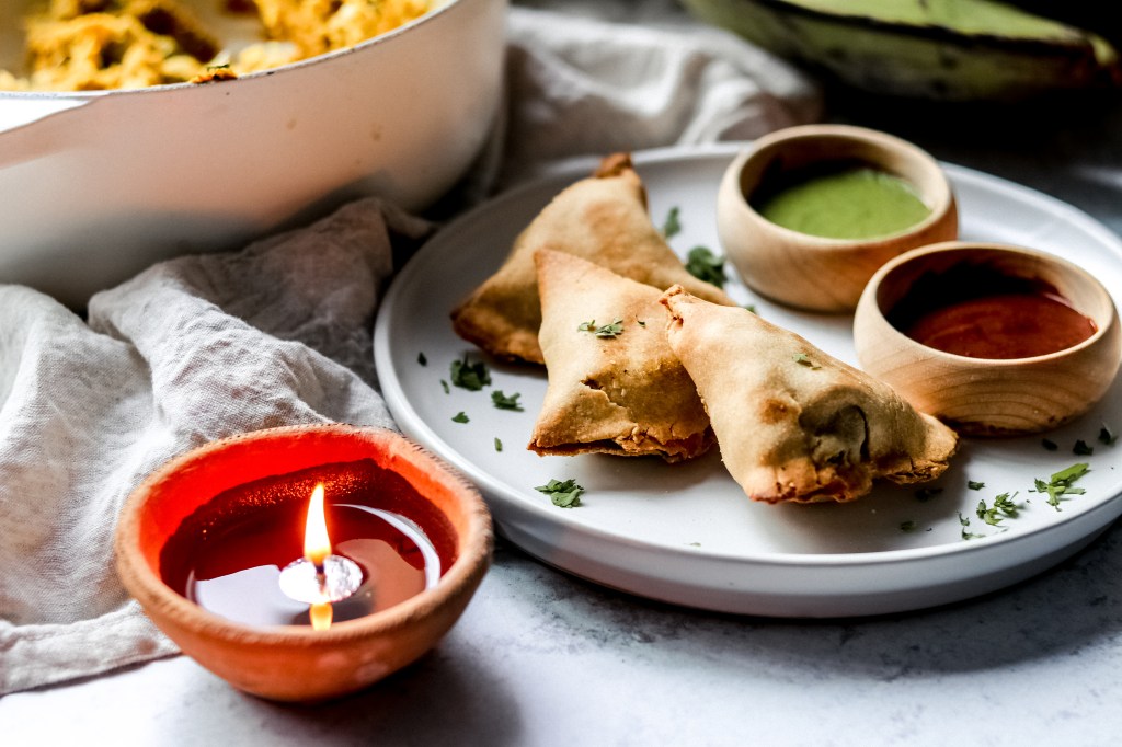 - Try baking instead of frying traditional Indian Diwali dishes (like these samosas!)