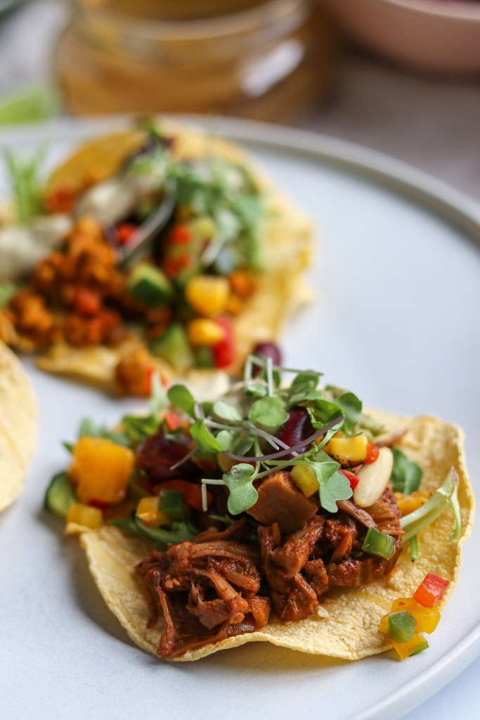 Happy #TacoTuesday! If you are following me on Instagram, you may have caught my Instagram Live tutorial on two delicious mains: Mexican Masala Jackfruit and Tempeh “Sofritas”. Both of these recipes take less than 30 minutes to make, and is a perfect addition to any dish like tacos, burritos, pizza, salads, grain bowls or even as a sabji!