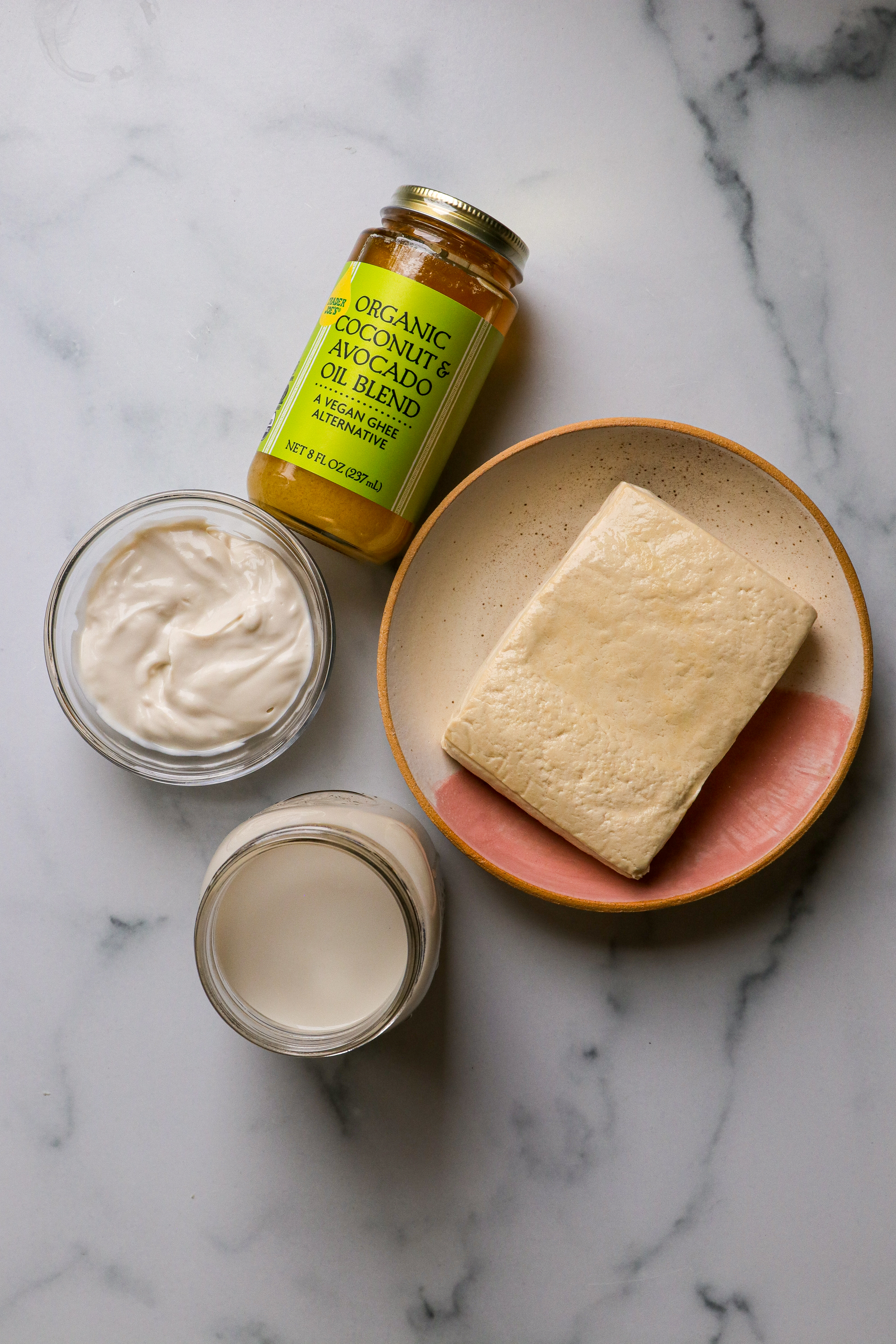 • For ghee/butter: Use a vegan butter alternative, avocado oil, olive oil, coconut oil, or vegan ghee from Trader Joes!