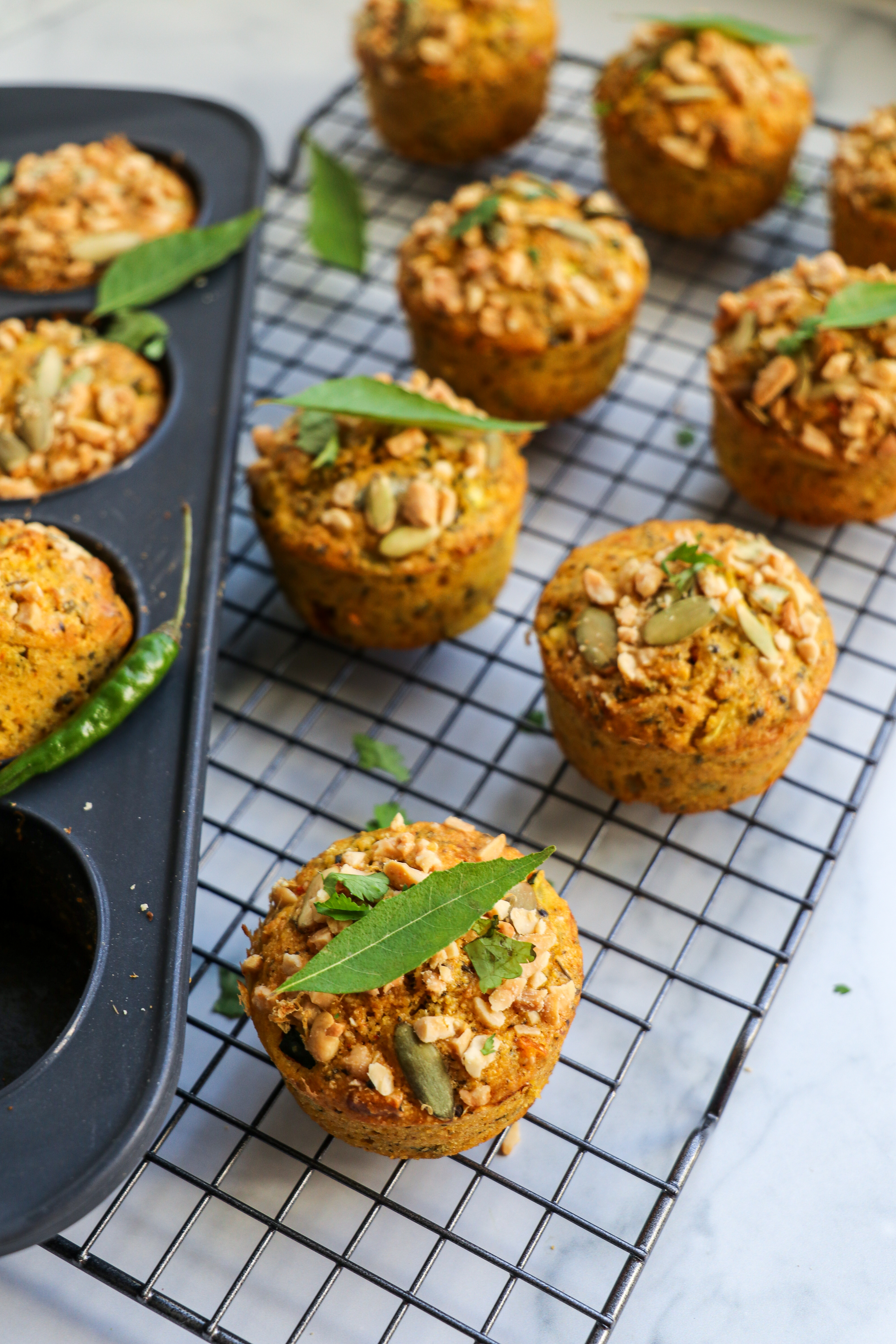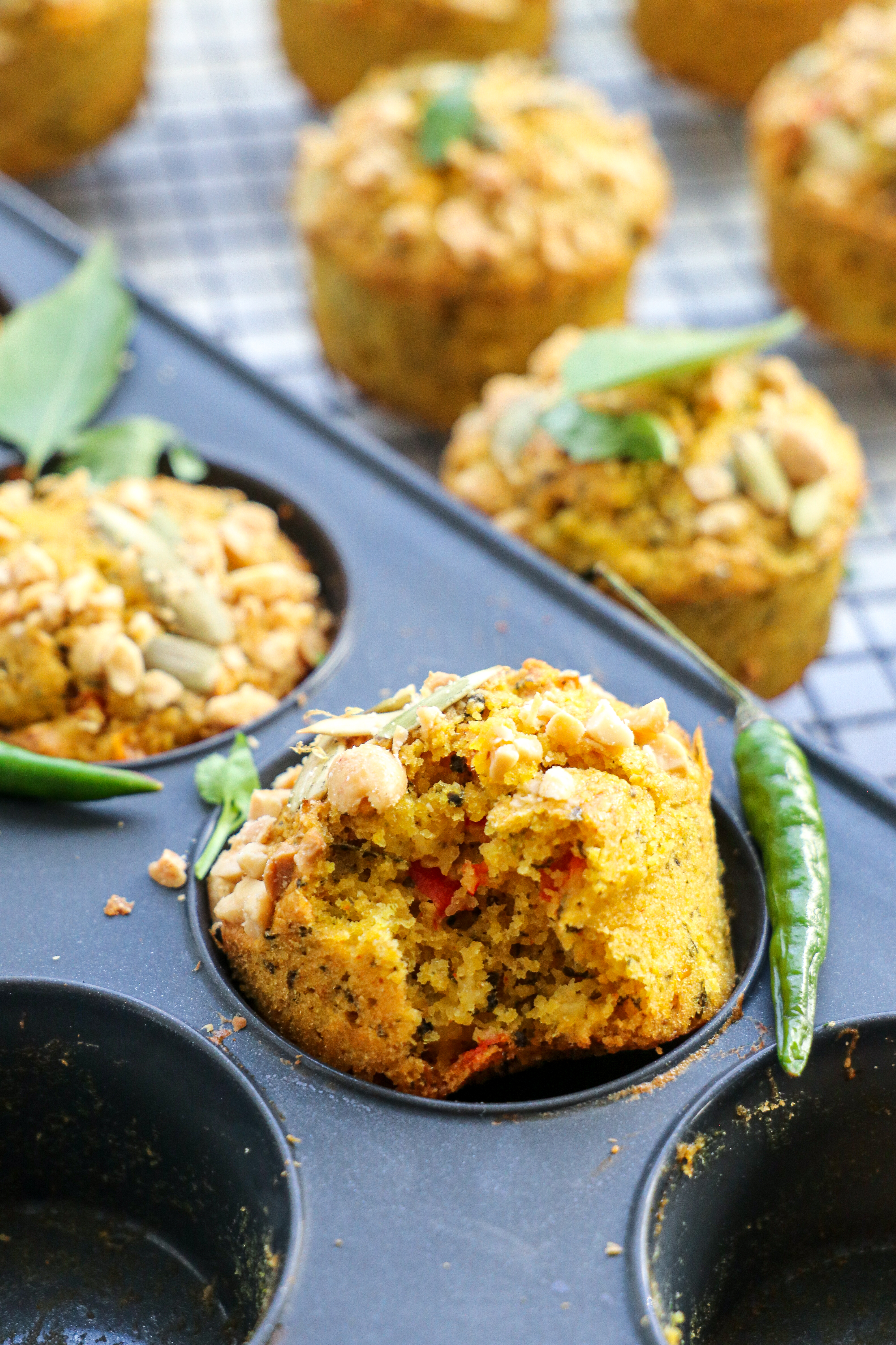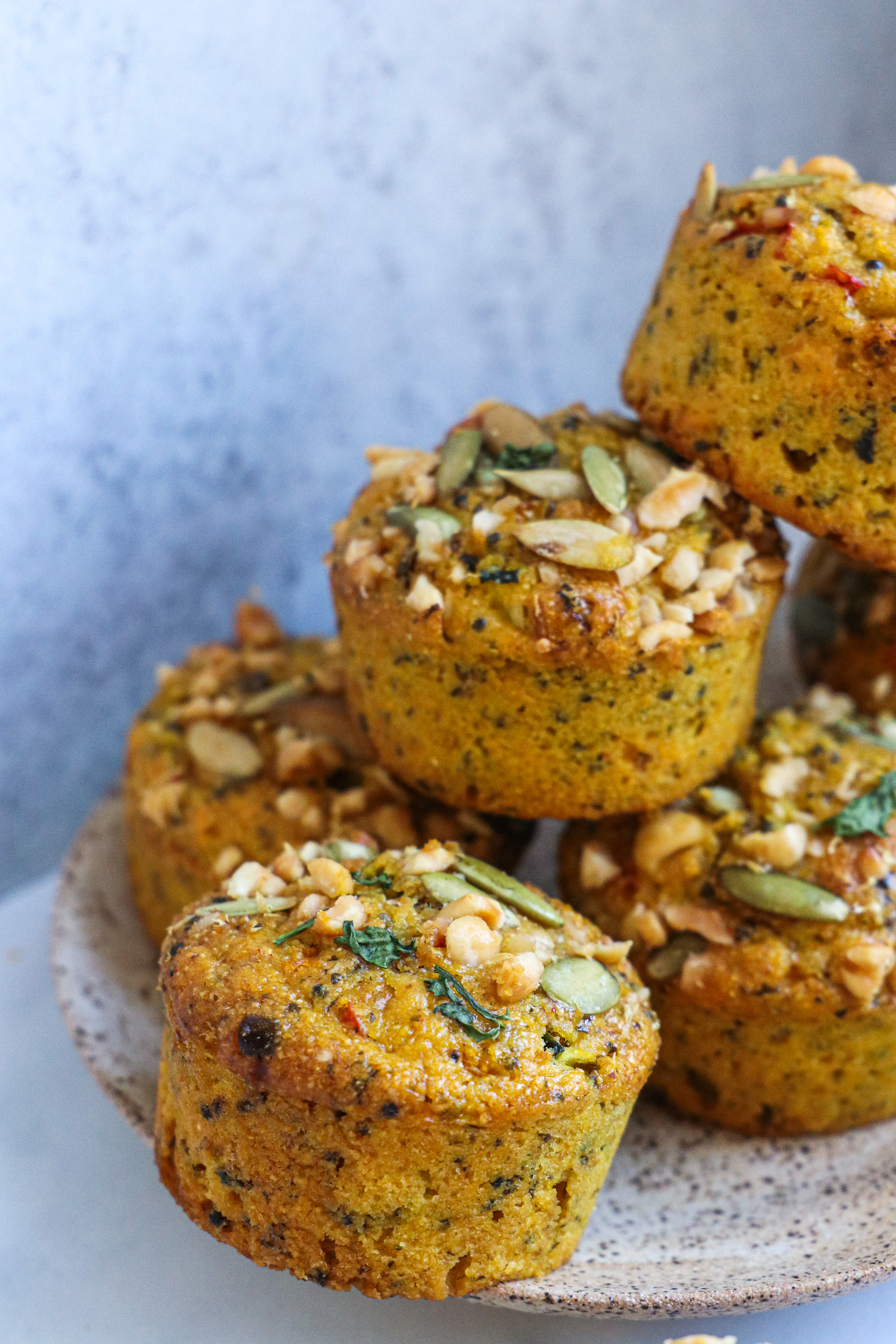 - Transfer to baking dish or cupcake pan, and top off with crunchy peanuts and pepitas.