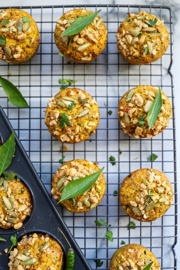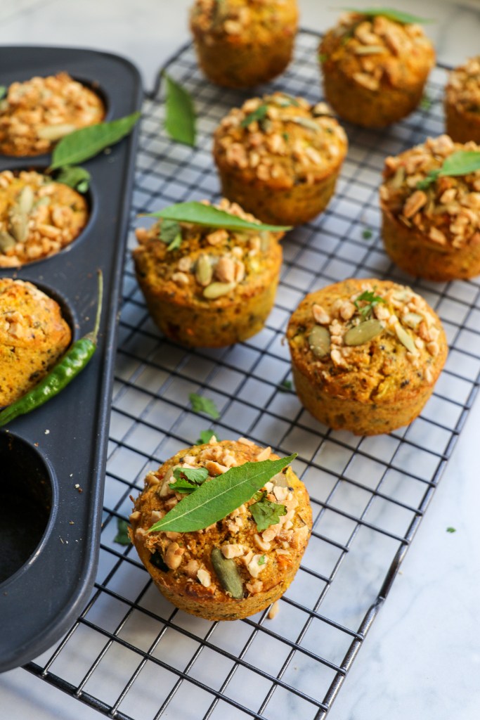 Let’s take a boring plain box of cornbread and spice it up! Inspired by the flavors of handvo, a traditional Gujarati vegetable cake, this recipe is a beautiful melange of Western and Eastern cultures. So if you don’t have access to handvo flour, are a homesick college student, need a quick appetizer with chai, or simply love fusion food, this recipe is for you! And of course, it’s vegan too! Also, if you don’t have a store bought cornbread mix, see the note below for how to make it from scratch. This is also a fantastic make-ahead recipe and keeps well in the fridge for several days, although they’ll likely be devoured before then 😛